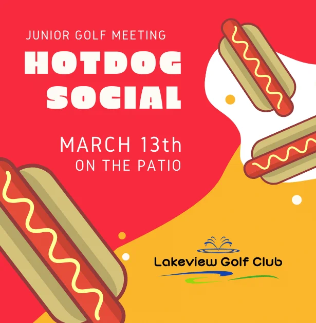 Lakeview Junior Golf Meeting & Hotdog Social SAT. MARCH 13th, 5 pm – 7 pm Come out and learn about Lakeview’s Junior Golf Programs for the upcoming season! $5 for a hot dog chips and drink. On the patio at Lakeview Golf Club + Add to Google Calendar + iCal / Outlook export Date Mar 13 2021 Expired! Time 5:00 pm - 7:00 pm Share this event