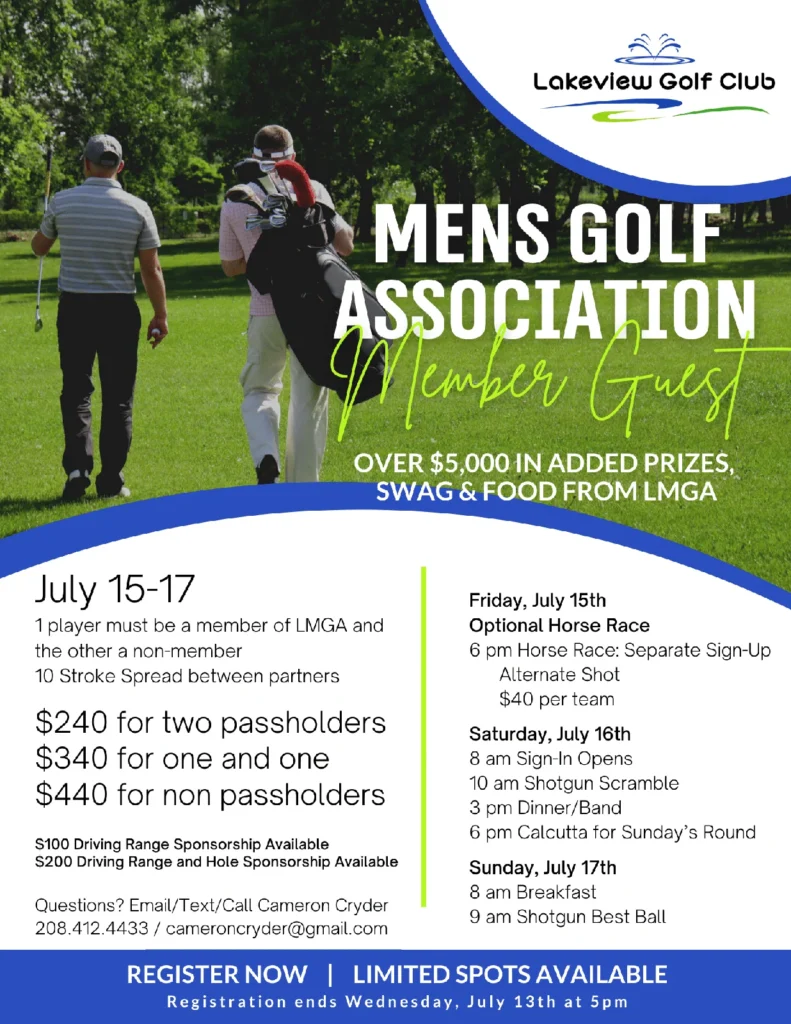 LMGA Member/Guest + Add to Google Calendar + iCal / Outlook export Date Jul 15 - 17 2022 Expired! Time All Day More Info Register Now Category Golf Tournament Register Now Share this event