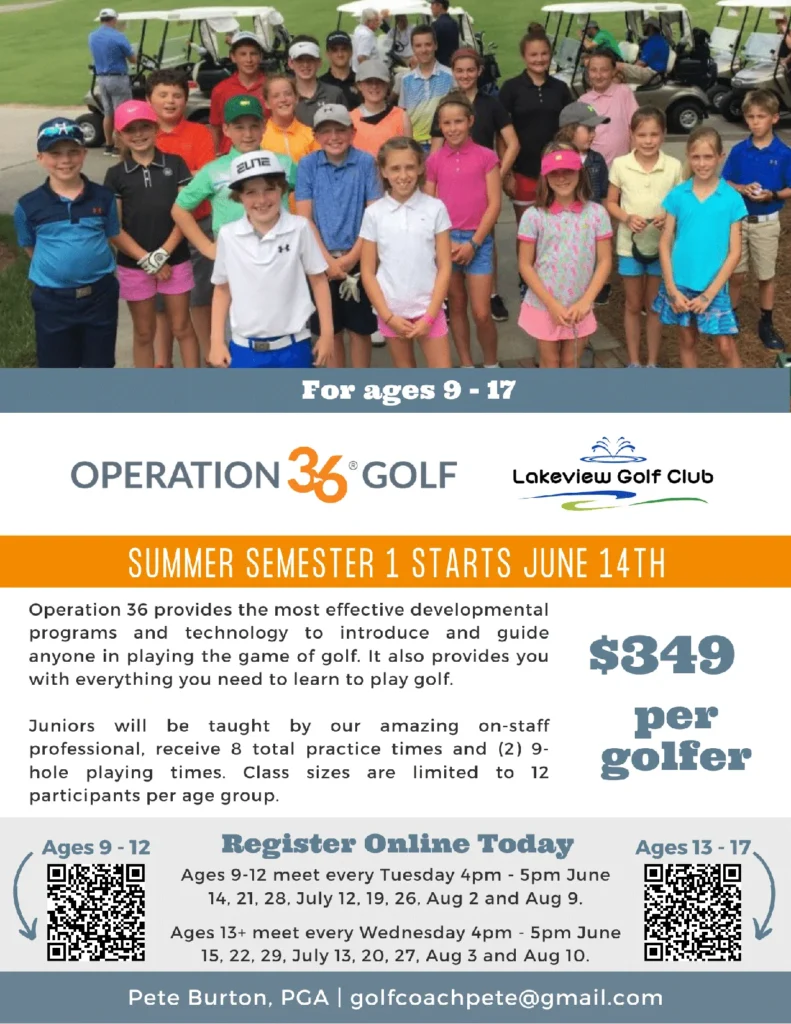 OP 36 Semester 1 – Ages 13- 17 + Add to Google Calendar + iCal / Outlook export Date Jun 15 2022 Expired! Time 4:00 pm - 5:00 pm More Info Register Now Category Junior Golf Register Now Share this event