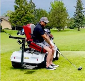Since Andrew’s accident, he has been able to borrow a Single Rider Adaptive Golf Cart called SoloRider, thanks to the generosity of a fellow SoloRider who lives on Lakeview Golf Course.