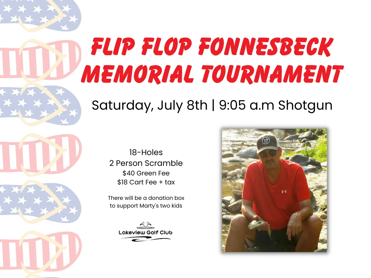 In honor of Marty and his flip-flops the dress code is to wear your best pair of flip-flops before, during, and after golf.